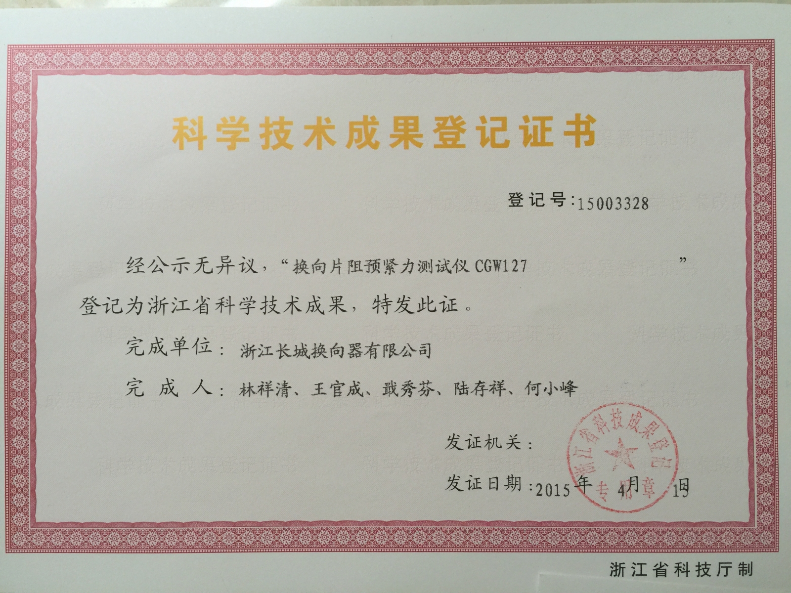 科学技术成果登记证书