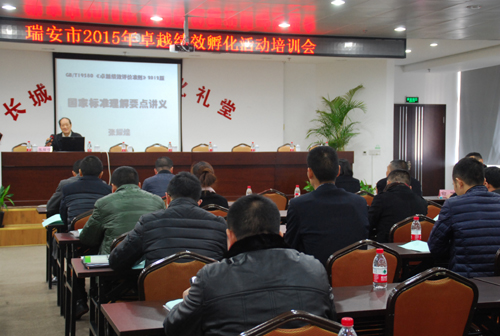 此次培训邀请了清华大学职业训练中心卓越绩效项目顾问张耀煌老师进行授课,以讲解卓越绩效评价准则国家标准为切入点,结合瑞安市产业结构特点、企业管理架构模式以及相关案例,深入剖析和详细说明了标准在企业实践中的运用。培训会后,公司行政副总陈凤仙带领参会企业参观了公司生产现场,相互交流意见。长城公司自导入卓越绩效管理模式以来,有力促进了公司各方面的提升,质量管理水平不断上新台阶。 2010年获温州市市长质量奖,2013年成为温州市首批先进质量管理孵化基地,今后长城公司将继续结合自身特点,以最大的耐心、最大的决心、最强的信心去追求卓越绩效,推行精益生产,全面提升质量管理水平,增强竞争优势,共同推动全市经济转型升级。