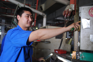 记者小笔记:汪群松,对我的到来觉得突然。我问他,是否知道自己上了质量明星榜?他很是不好意思地说,自己看到了。因为他觉得自己并没有特别突出的表现。他的质量感言是:只要一有空,就是去量产品,看产品。一车间之前并没有像三车间一样安装自检的语音提示,但汪群松要求自己要不断关注产品情况,确保质量。冷挤压工序,现在大部分改为自动操作,他在操作上只需把料放进送料盘,按设备开关就好了。劳动强度大大降低了,一个人同时操控三台设备,产量大幅度提高。但他并没有因此而放松,他说,机台虽然自动化了,但更要关注产品质量,如果不认真仔细,批量废品的可能性会远远大于手工操作。