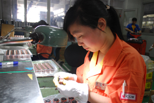 采访小笔记:排片是所有工序中唯一一道纯手工的工序,这个岗位需要的是一种耐力与坚持。我在招聘过程中也面试过不少年轻姑娘,很多人并不是因为学不会而放弃,都是因为坚持不了每天如此反复的工作方式。但每一份工作都有它存在的价值,金关荣就用她的工作态度向我们展示了一个普通员工的坚持。接近9年的工龄,我对她在排片质量方面的心得很是感兴趣。她告诉我,她其实也就做了三件事,一个是事先检查铜排,二是排片过程中留意是否有废品,第三就是排好后要再检查一遍。她其实正是运用了从事前、事中、事后三个环节进行了控制的质量管理方法。事实上,最好的理论实践者都来自平凡的员工当中。