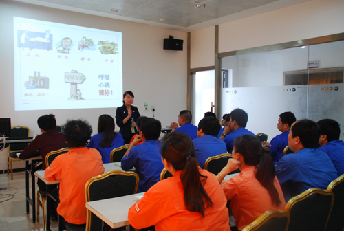 本报讯  “同事在工位上突然晕厥或受伤,在一旁的你该怎么办?”“你的亲人溺水后,作为第一目击者你怎么样帮助她?”为普及卫生救护和防病知识,帮助员工提高在突发事故中的自救、互救意识和处置能力,522日,长城公司邀请了浙江省五进健康宣教中心刘玲玲老师开展了“紧急救护、健康知识”的普及宣讲。公司各部门负责人、车间主管、车间班组长及办公室人员参加了培训。