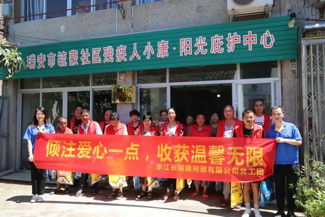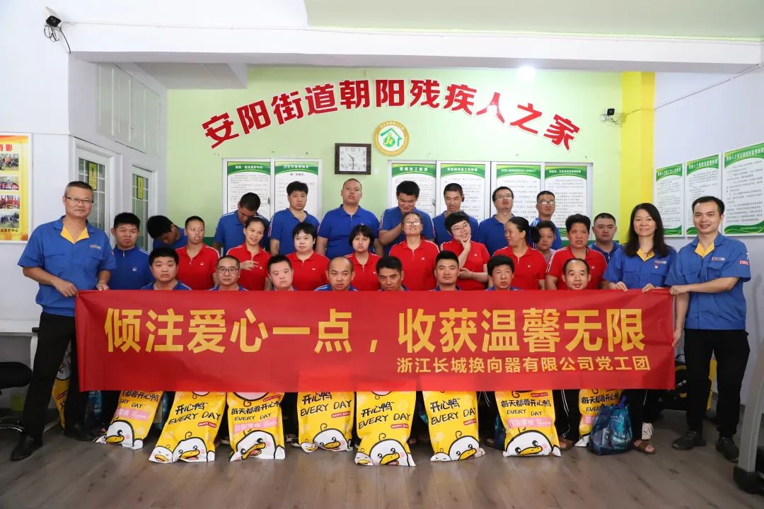 8月18日上午,长城公司党工团走进安阳街道朝阳“残疾人之家”、毓蒙社区残疾人小康. 阳光庇护中心,开展“倾注爱心一点,收获温馨无限”慰问活动。长城公司行政副总陈凤仙、采购部副部长赖国新、工会主席陈淑津、科技项目科科长黄旭环一行人在炎炎夏日里,为“残疾人之家”庇护人员送上亲切问候和爱心慰问物资。