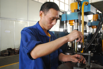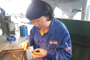 记者小笔记:汪群松,对我的到来觉得突然。我问他,是否知道自己上了质量明星榜?他很是不好意思地说,自己看到了。因为他觉得自己并没有特别突出的表现。他的质量感言是:只要一有空,就是去量产品,看产品。一车间之前并没有像三车间一样安装自检的语音提示,但汪群松要求自己要不断关注产品情况,确保质量。冷挤压工序,现在大部分改为自动操作,他在操作上只需把料放进送料盘,按设备开关就好了。劳动强度大大降低了,一个人同时操控三台设备,产量大幅度提高。但他并没有因此而放松,他说,机台虽然自动化了,但更要关注产品质量,如果不认真仔细,批量废品的可能性会远远大于手工操作。