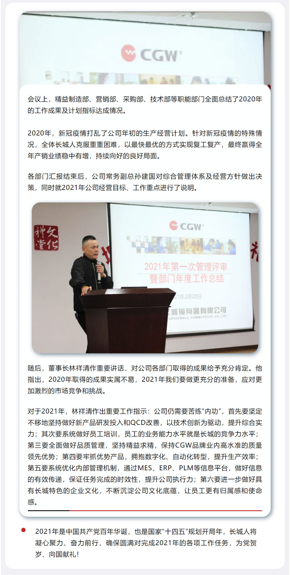 年度会议|长城公司开展2021年第一次管理评审会议