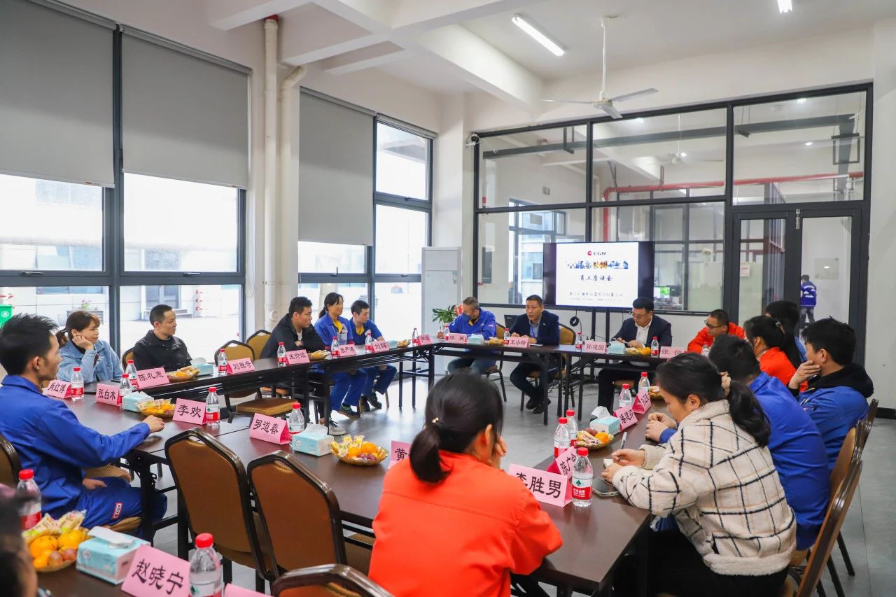 座谈会开始前,人力资源科介绍了本次座谈会的目的和流程。随后,公司常务副总孙建国、运营总监王小楷、设备副总陈展、质量副总张俊与30多位员工代表深入交流,了解他们的工作近况,沟通交流日常工作与生活中遇到的难题,并及时答疑解惑。